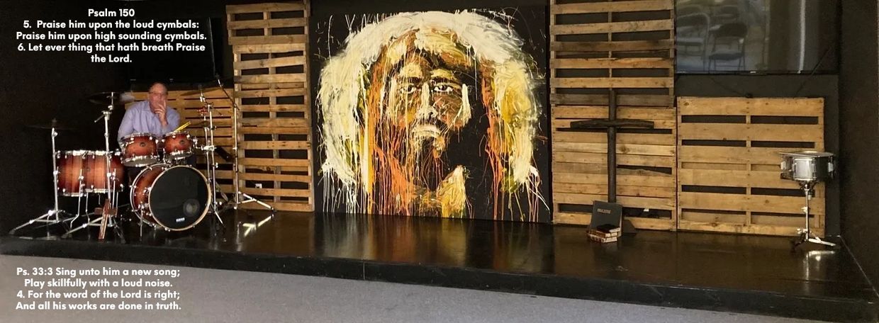 The heart of this ministry is praise and worship, speaking God's word, and giving testimony. I play my drums to music tracks in praising and worshipping our Lord and Savior. Also, I utilize visual aids to bring emphasis to subject matters as needed. Aids such as special effect lights, and stage props may be part of the services.